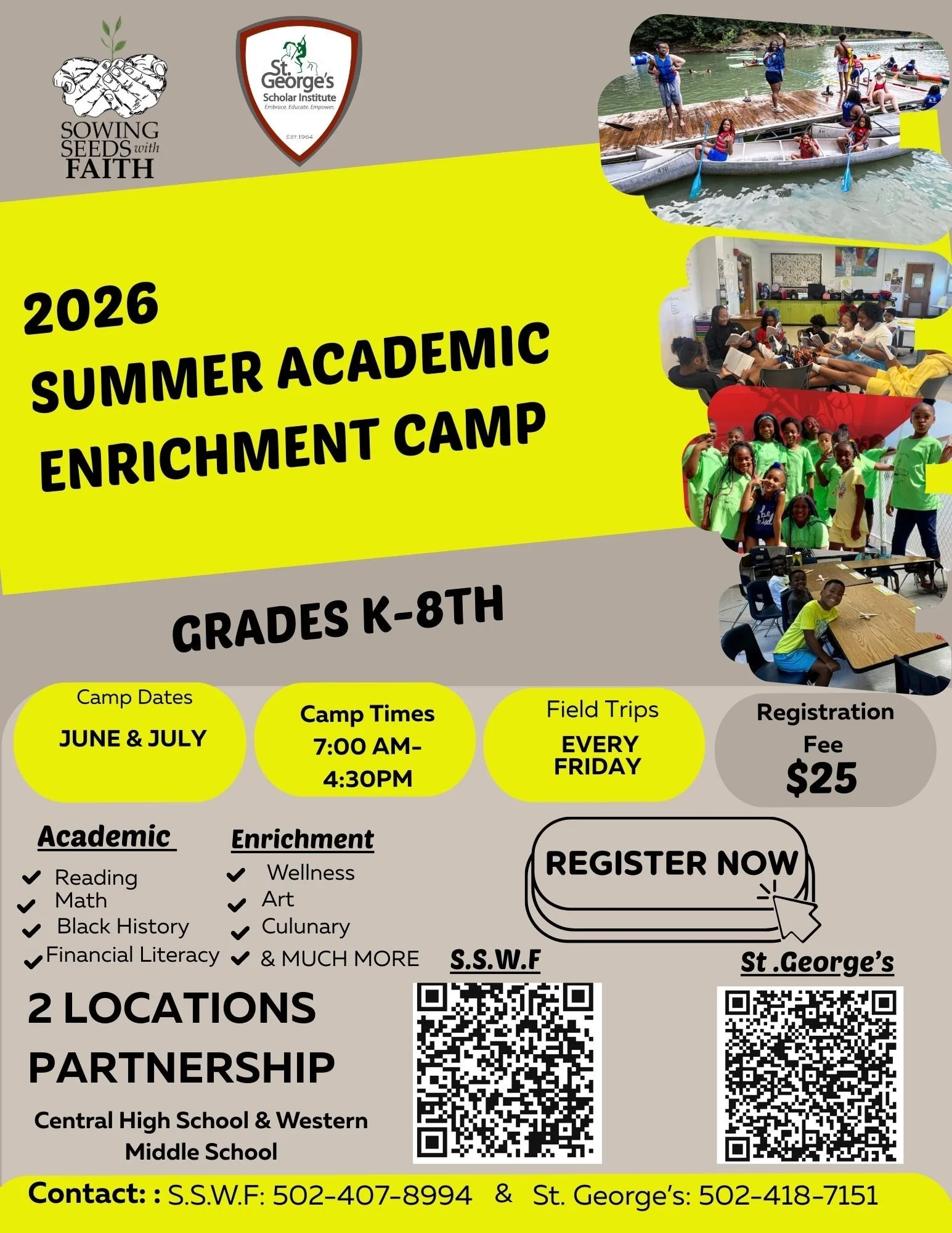 Summer Enrichment Camp Monday, June 1, 2026 7:00 AM 07:00 Friday, July 17, 2026 4:30 PM 16:30 Central High School & Western Middle School Louisville, Kentucky United States (map) Google Calendar ICS